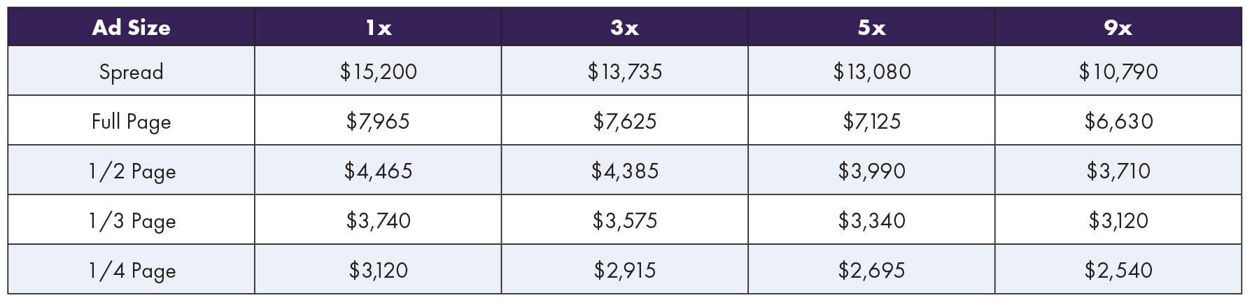 With a full menu of print and digital options from banner ads to imaginative rich media, we can develop an effective and efficient plan for your budget. Create your perfect audience by reaching our subscribers.